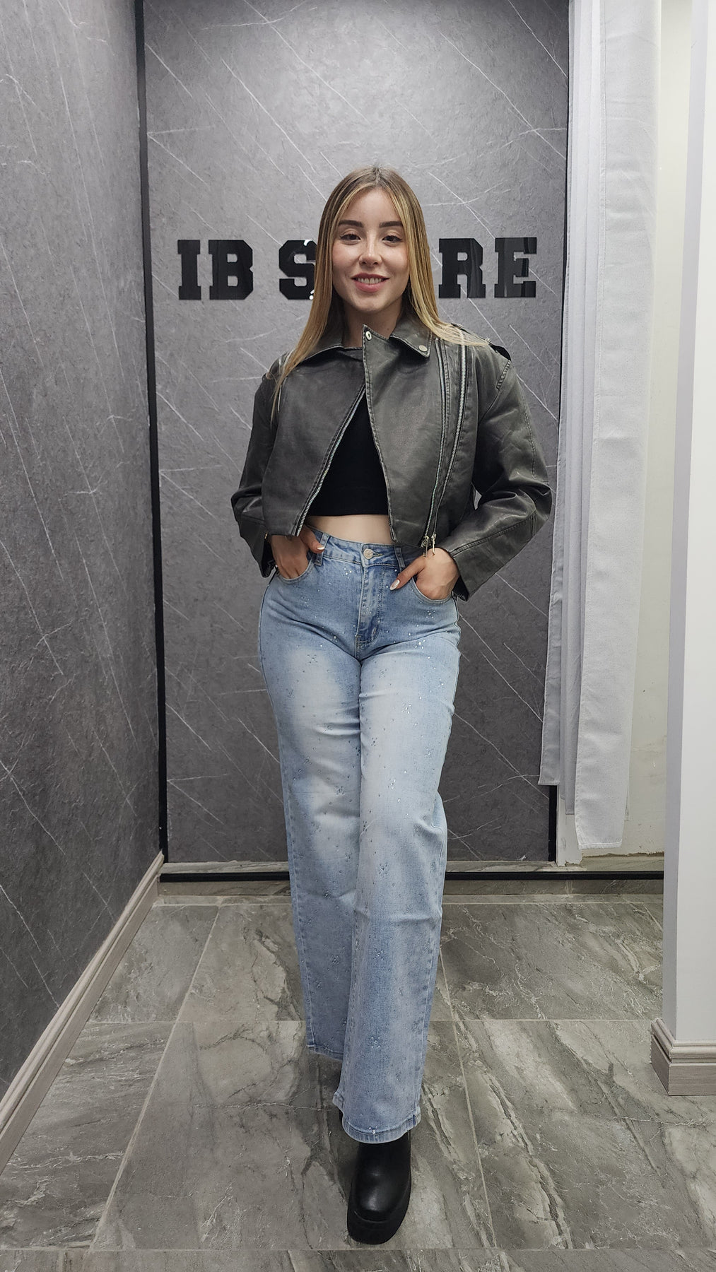 • Corte tipo biker que realza la figura y aporta versatilidad